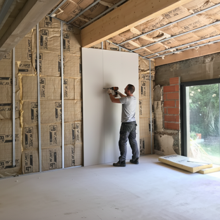 Pose de doublages isolants pour améliorer le confort thermique et acoustique de vos espaces.